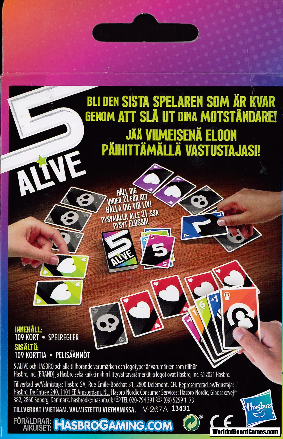 5 Alive är ett enkelt kortspel där spelare vill hålla dig under 21 för att överleva. Förutom sifferkort finns även vilda kort som kan ändra spelet helt och hjälpa dig slå ut dina motståndare.