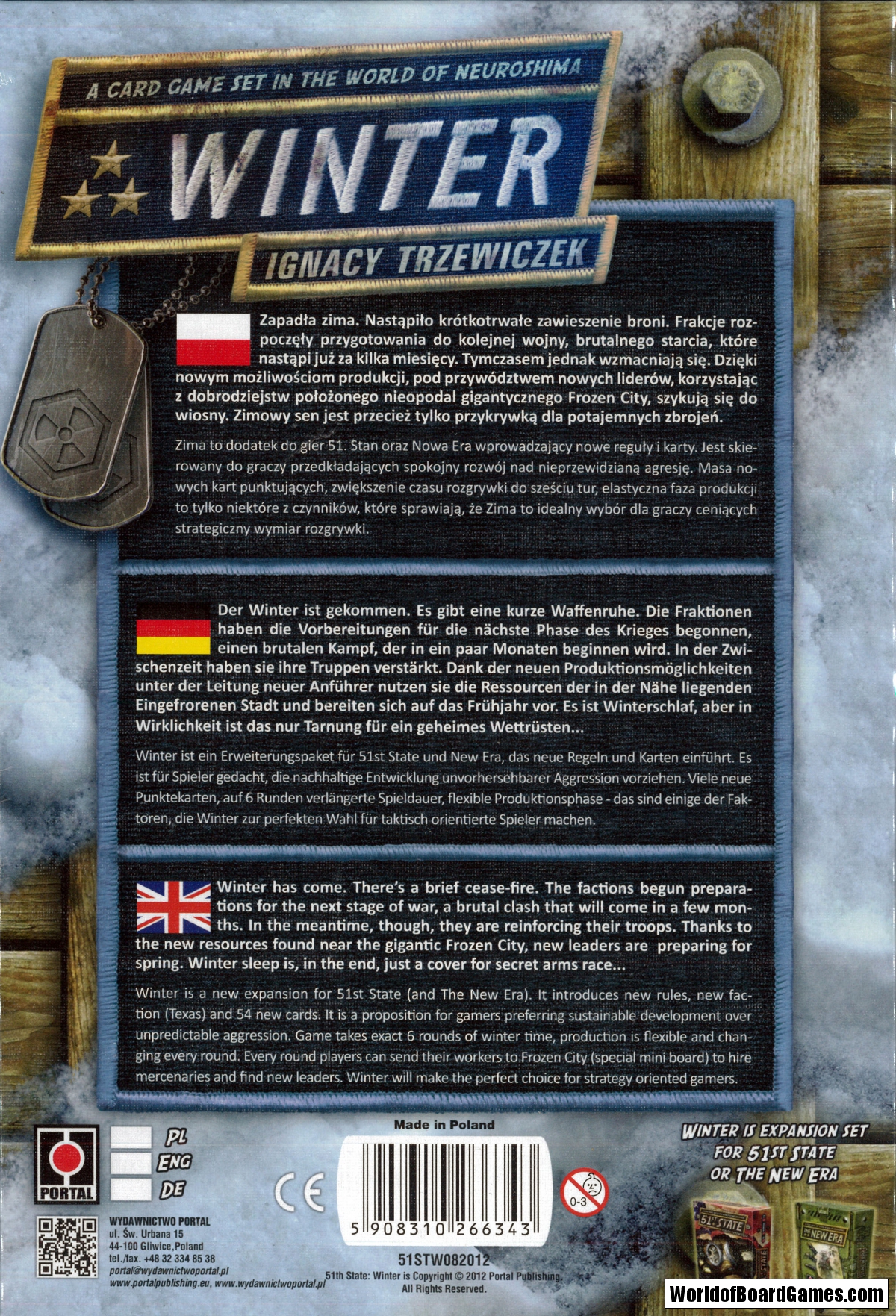 Winter, an expansion pack for both 51st State and The New Era, introduces new rules and 54 new cards to both games that will reward gamers who prefer sustainable development over unpredictable agression.