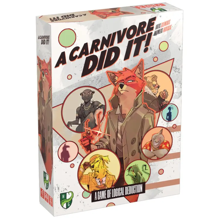 A Carnivore Did It is a cooperative deduction game where one to five detectives sift through clues, contradictions, and suspect statements to crack complex mysteries.