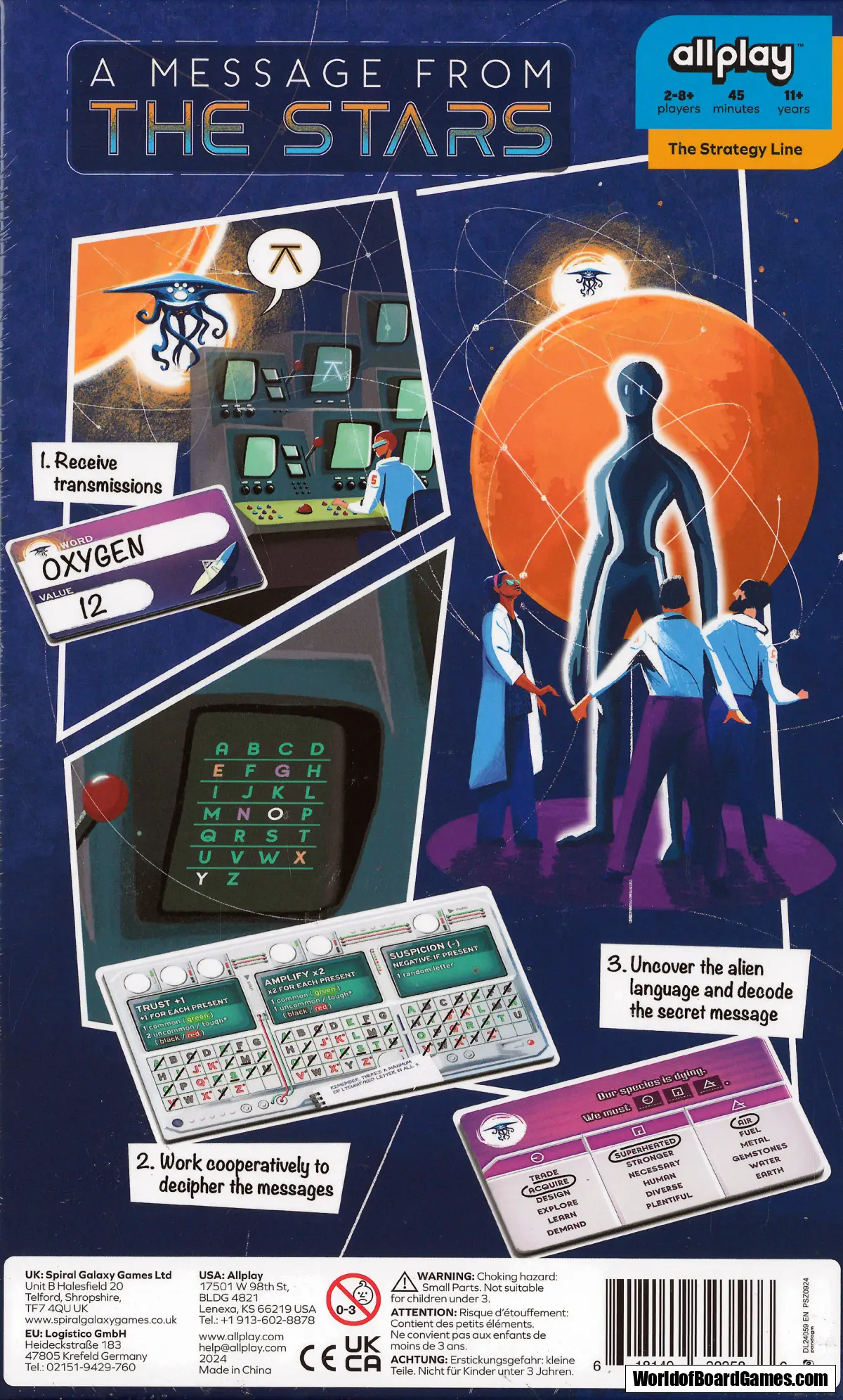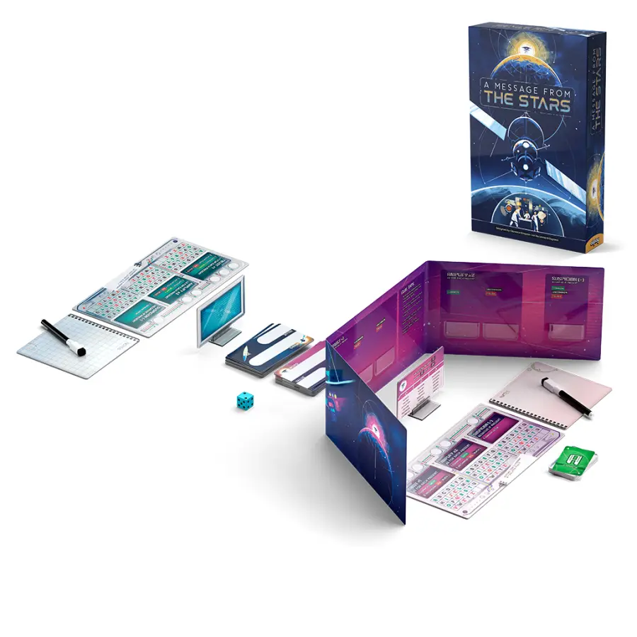 A Message From The Stars is a cooperative deduction game that challenges players to decipher alien transmissions using logic, pattern recognition, and clever word association.