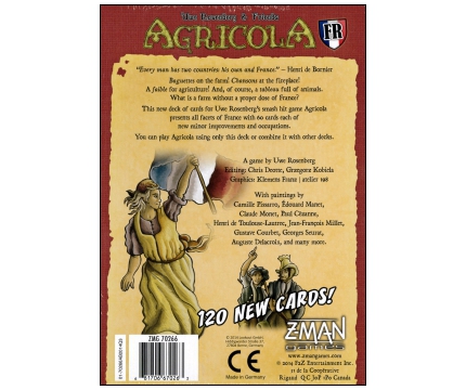 This new deck of cards for Uwe Rosenberg’s smash hit game Agricola presents all facets of France with 60 cards each of new minor improvements and occupations.