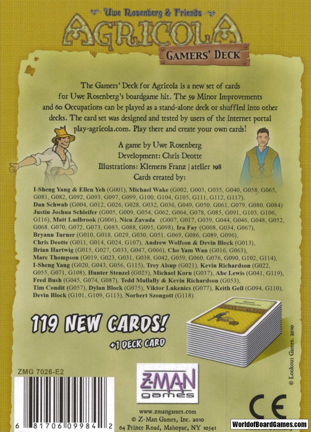 An Agricola expansion featuring 120 cards designed by the Agricola online community.