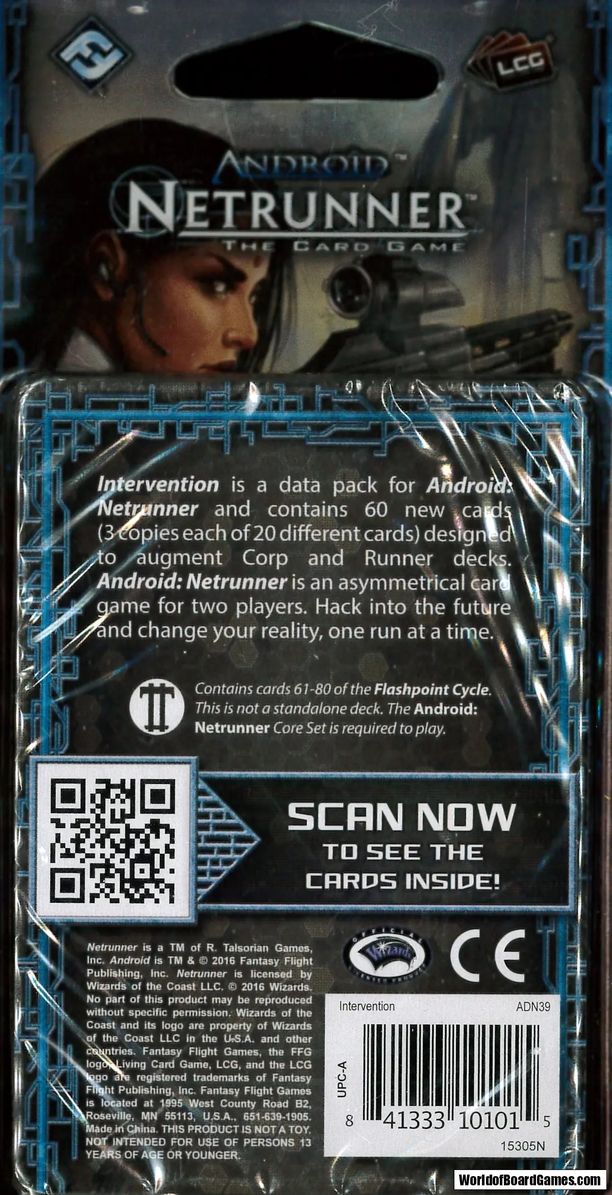 Intervention is the fourth Data Pack in the Flashpoint Cycle for Android: Netrunner, and its sixty cards (three copies each of twenty different cards) deposit you in the streets of New Angeles in the wake of the Twenty-Three Seconds incident. The economy is in free fall not just in New Angeles, but worldswide. For days the city lurches deeper into chaos. There are riots. There are kidnappings. And then the corps open fire on each other…
