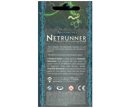 With their advancements in ice, icebreakers, and hardware, the Data Pack’s sixty new cards (three copies each of twenty individual cards) escalate the game’s cyberstruggles to a new form of art. No longer do the factions content themselves to building and breaking snares and subroutines; they turn their attentions to the flow of time itself. So much as time is a matter of perception and of movement, A Study in Static is a study in the ability to accelerate and impede the passage of time.