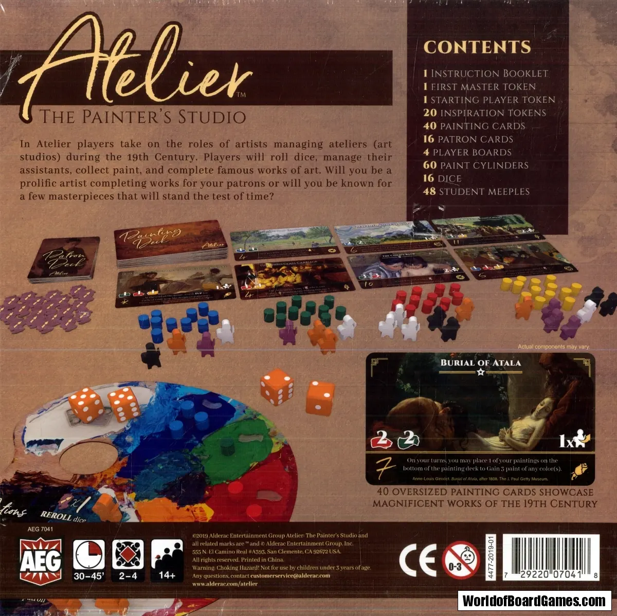 Take on the role of an artist managing an atelier, or art studio, during the 19th century. Roll dice, manage your assistants, collect needed paint, and complete famous works of art. Will you be a prolific artist completing many works for your patrons, or will you be known for just a few masterpieces that stand the test of time?