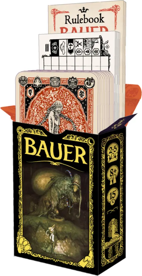 I Bauer ger du dig ut på en resa genom Trollskogen för att se vem som är den största äventyraren. Samla kort som berättar historien om ditt äventyr och som är värda olika många poäng beroende på vilka andra kort du har samlat. I slutändan är det spelaren med flest poäng som har varit med om det största äventyret och vinner spelet!