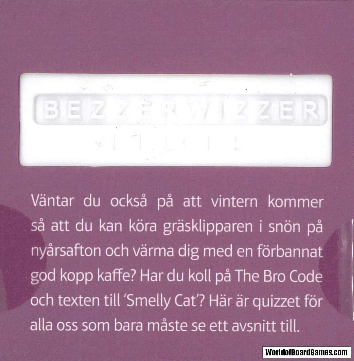 Innehåller 60 frågor och en kategoribricka. Kan användas tillsammans med Bezzerwizzer Original och Bezzerwizzer Kompakt. Från 15 år.