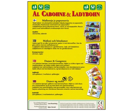 Spela Bohnanza med en liten twist till sig! Al Cabohne är för 1-2 spelare och saknar byteshandeln men innehåller istället maffiabossar som stjäl spelarnas bönor. Ladybohn för 3-5 spelare introducerar istället såväl värdefulla dambönor som förtjänstlösa barnbönor.