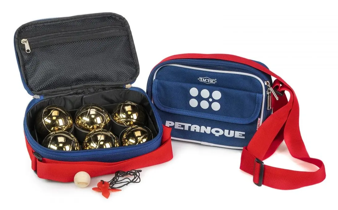 Allt du behöver för ett roligt parti boule/petanque i en praktisk väska! Sportväskan innehåller ett set titaniumbeklädda bouleklot (7,3 cm/720g) , en lille i trä och ett måttband. Den vadderade axelremmen gör väskan lätt att bära och är gjord av hållbart material för utomhusbruk.