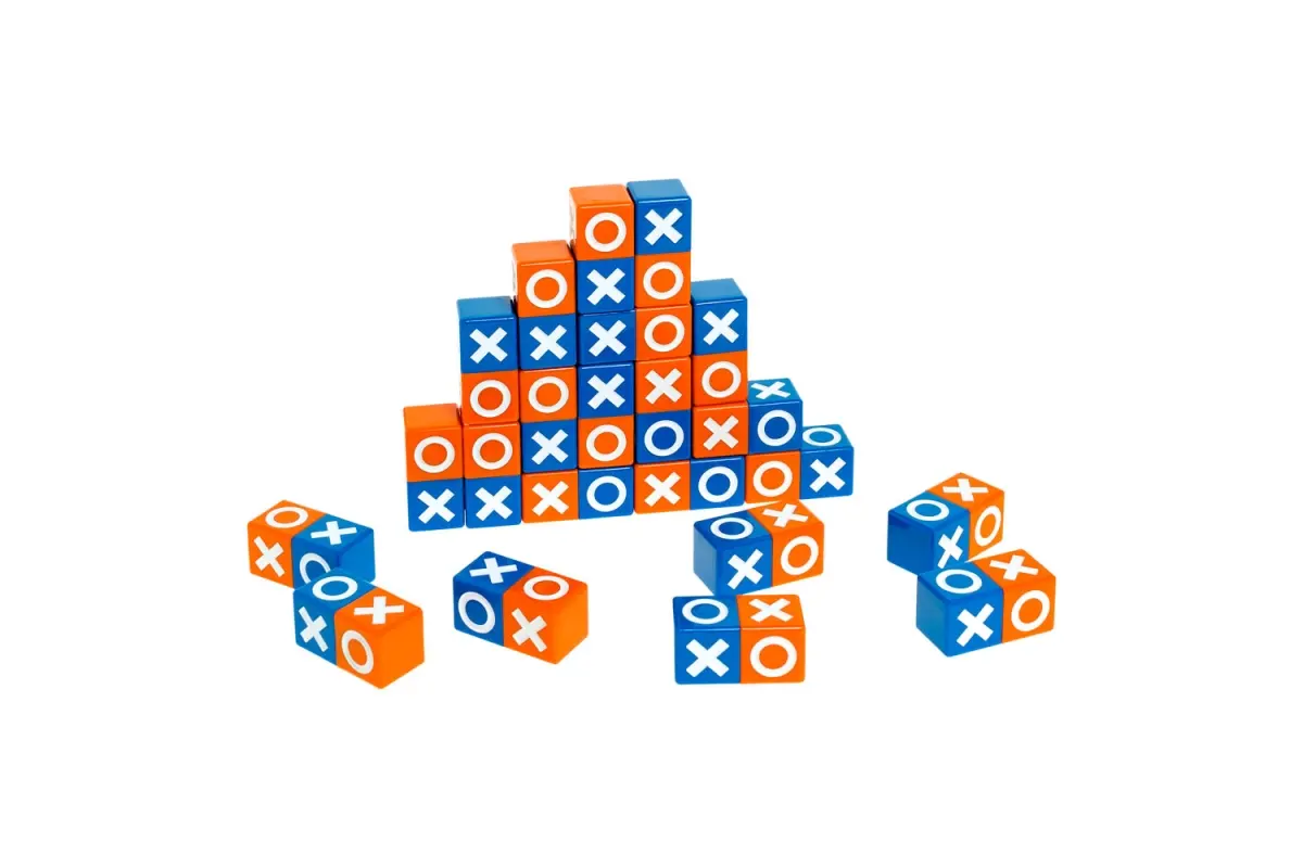 Players build their wall to victory with vibrantly colored blue and orange bricks engraved with white X’s and O’s. The first player to align four of their symbol or color in a row wins the game and claims the wall! But watch out! Each brick contains both your symbol and color as well as those of your opponent. So each time you add a new piece, you risk helping your opponent win the game! Brix is a uniquely creative game that is fast to learn but employs a complex strategy that older children and adults will love!