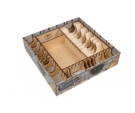 Before defending your castle from the evil onslaught, you'll want to slay the REAL monsters of a disorganized box and slow setup times. Enter the Castle Panic Organizer! Supporting all current expansions, there are rows of room for all your tiles with dividers to keep them in order. As an alternative, there is a large section if you prefer to store your tiles in the pouch. Cards are stored at an angle and allow for sleeves.