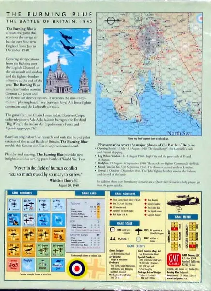 The Burning Blue is a board wargame that recreates the savage air battles over Southern England from July to December 1940.