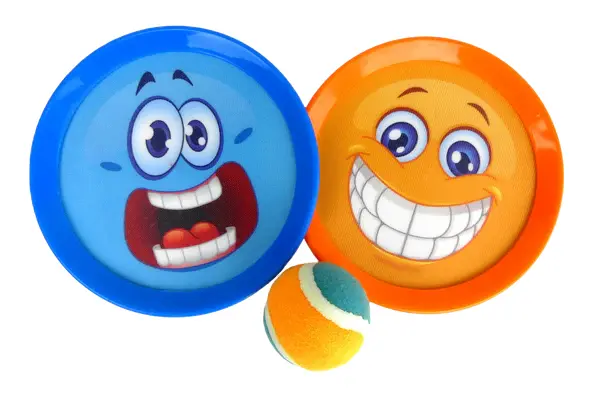 Roligt "Catch set" med Funny Face motiv! Med 2 st handplattor och boll som fastnar på plattans kardborre yta. Perfekt för stranden och trädgården.