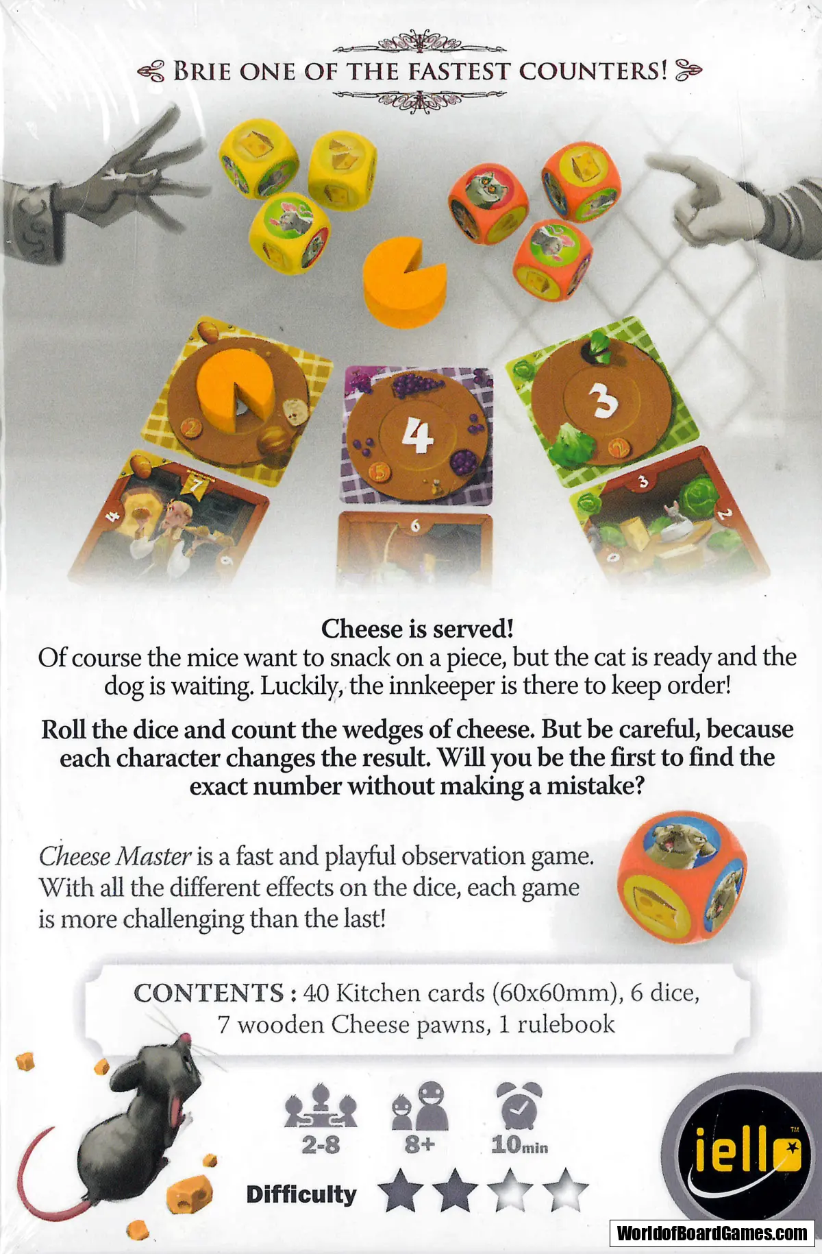 In this game of musical chairs, be the fastest to display the right number with your cards and validate your choice with a cheese counter.