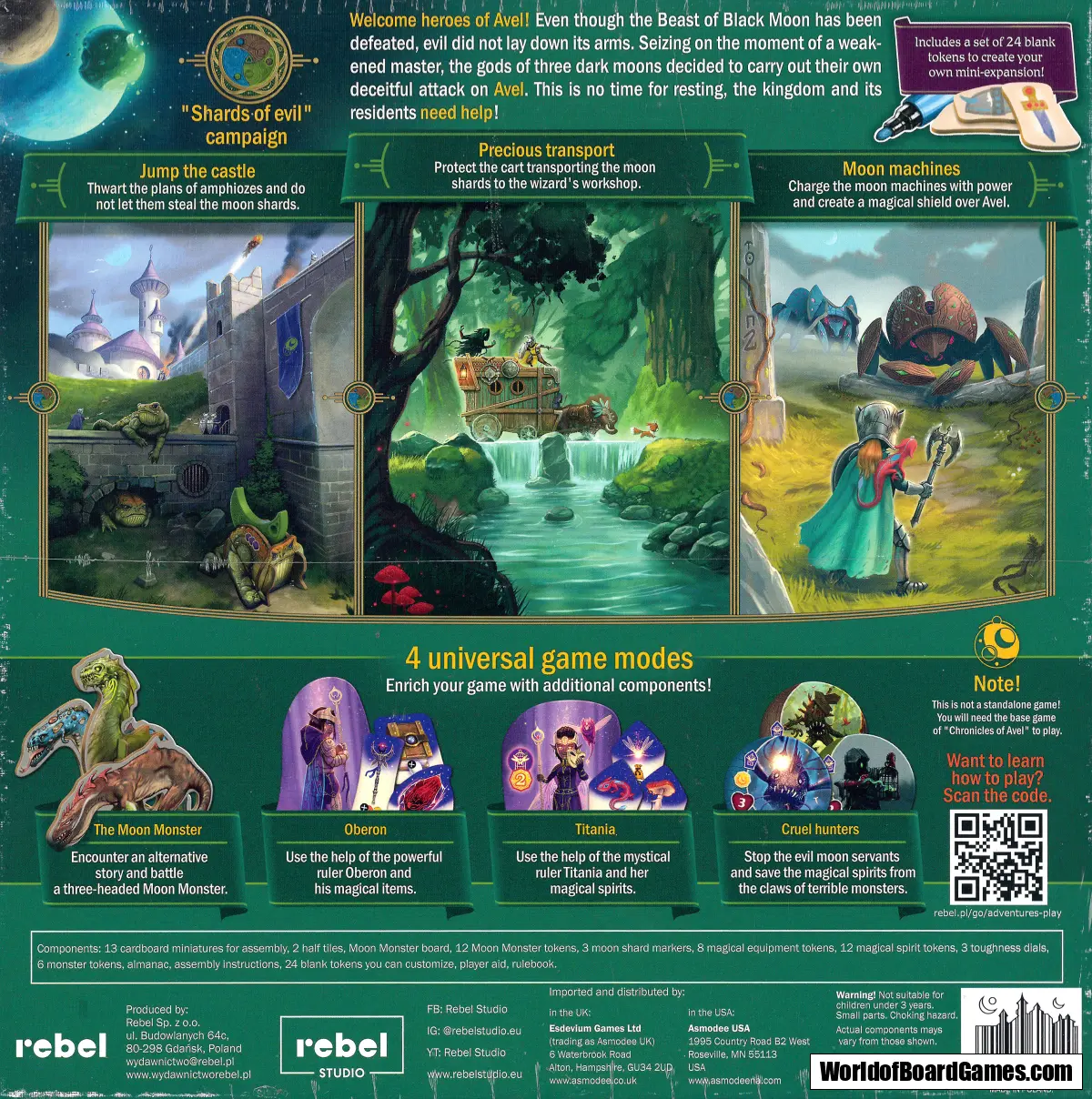 Chronicles of Avel: New Adventures is an exciting big expansion for Chronicles of Avel, in which players will once more become heroes and heroines with an epic quest to help the magical land of Avel. The game introduces 3 thematic scenarios which can be played separately or as a campaign and 3 modules that can be used in different combinations to create personalized challenges. Players will have to cooperate to choose the best strategy, support each other and win.