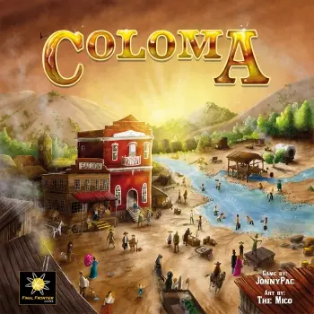 Coloma is the town where an unexpected event happened that shaped history of the Western Frontier. In the Winter of 1848 a man building a sawmill on the South Fork of the American River spotted some bright nuggets in the tailrace waters below. Sure enough, it was gold! Though he tried to keep his discovery a secret, word spread quickly and it triggered the California Gold Rush of ‘49. In the game of Coloma, you are a pioneer who has recently traveled out West to strike it rich and make a name for yourself. You will prospect for gold and use your windfalls to recruit workers, rustle up horses, and establish businesses. You will also get opportunities to explore the surrounding riverways and frontier lands. But alas! You are not alone—every other pioneer seems to have gotten the same idea! Therefore, it will take extra cunning tactics on your part to not go Bust with the rest of them…Coloma is a fast moving game with many paths to victory. It offers unique twists on simultaneous action selection, resource management, and engine-building.
