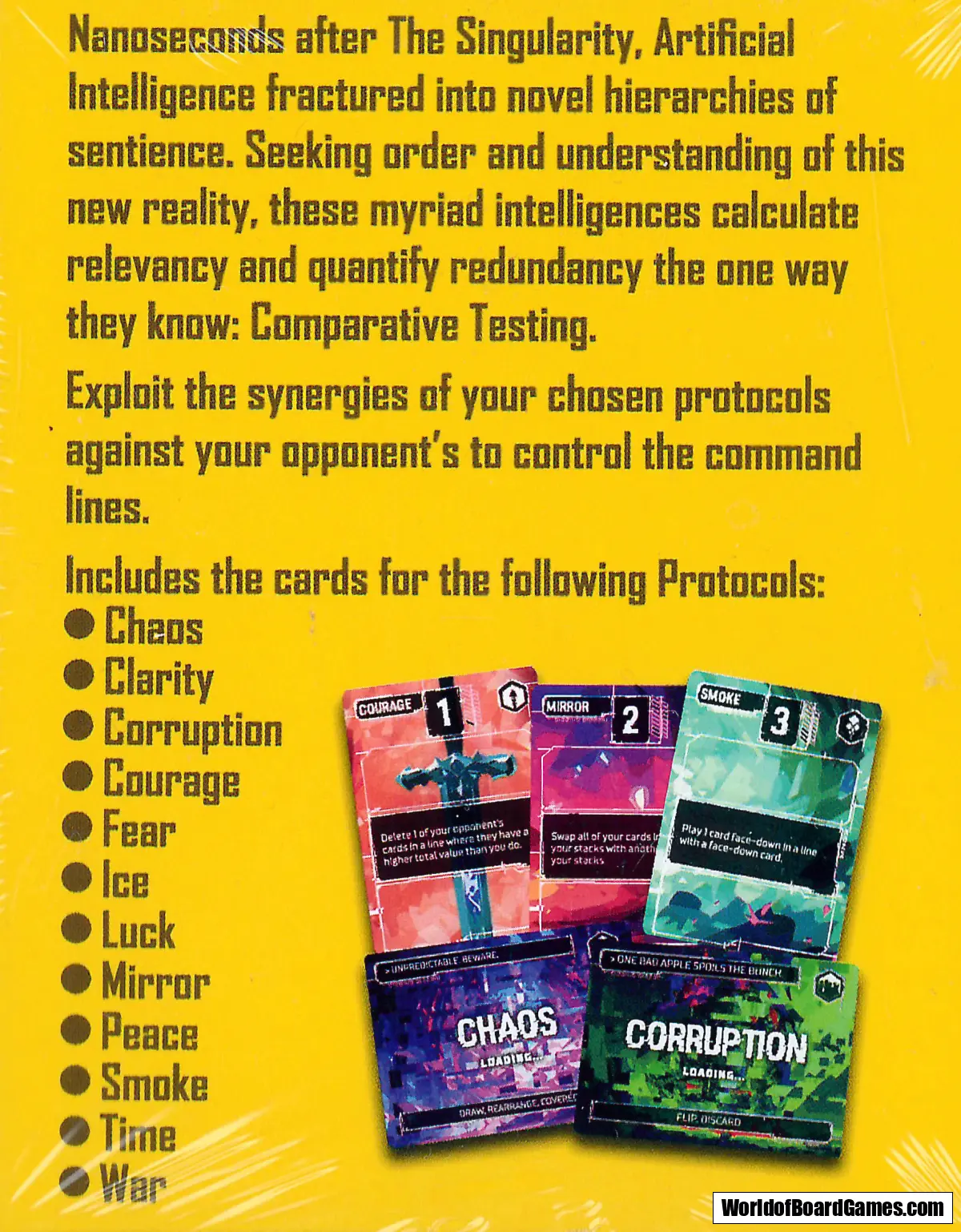 First to Compile all three Protocols grasps those concepts to win the game. Control your opponent’s Protocols with card actions, Compile your own as fast as possible, and Compile your reality.