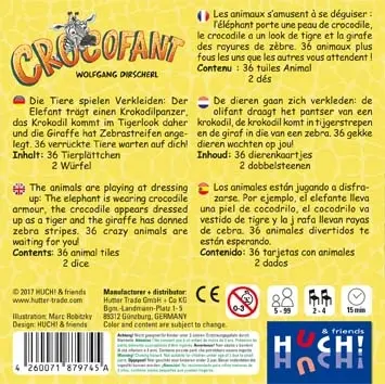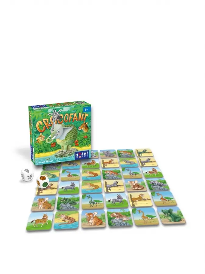 Crocofant provides two game variants, either as a memory game or a reaction game. In the memory game, a die varies between the silhouette and the pattern of an animal; this can make you sweat - you just kept the hiding place of the giraffe in mind, and now you have to watch out for the tiger stripes. In the reaction game, you check the face-up display of cards in order to find a specific combination of a silhouette and a pattern. Who will be the fastest in seeing the right combination and grabbing the appropriate animal?