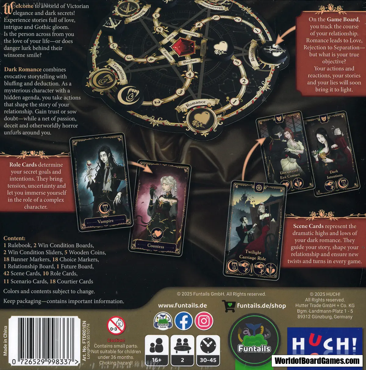 Ett intensivt duellspel för två, där romantik och ränksmideri går hand i hand. I Dark Romance gäller det att läsa din motspelare – innan du själv blir genomskådad.