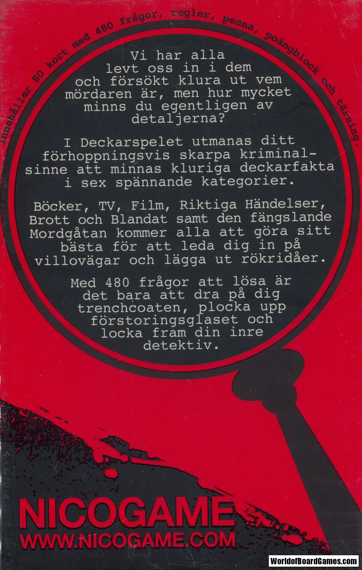I Deckarspelet utmanas ditt (förhoppningsvis) skarpa kriminalsinne i att minnas deckarfakta i sex fängslande kategorier.
