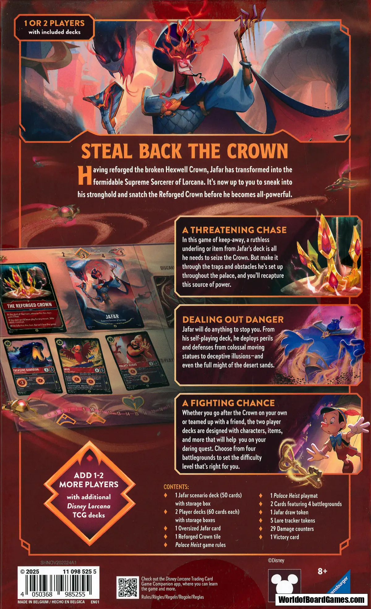 Efter att ha smidit den trasiga Hexwell-kronan har Jafar förvandlats till den formidable Supreme Sorcerer of Lorcana. Det är nu upp till spelarna att smyga sig in i hans fäste och stjäla tillbaka den smidda kronan innan han blir allsmäktig.