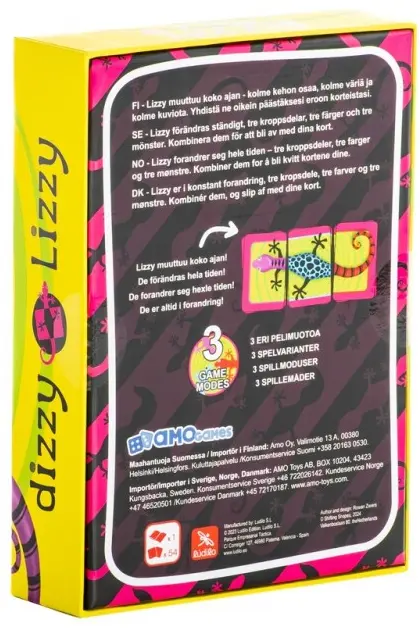 Kortspelet från Nederländerna där tre kort bildar en ödla (Dizzy Lizzy). För att vinna spelet måste du bli av med dina kort innan de andra spelarna gör det.