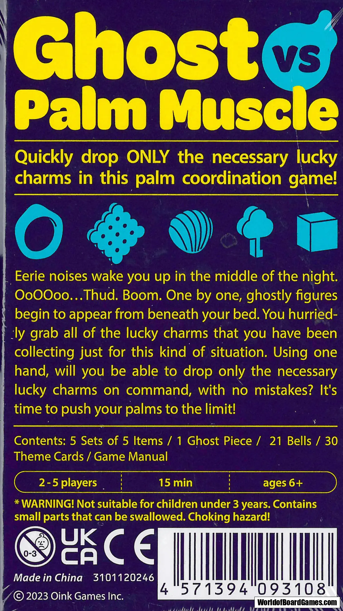 Eerie noises wake you up in the middle of the night. OoOOoo…Thud. Boom. One by one, ghostly figures begin to appear from beneath your bed. You hurriedly grab all of the lucky charms that you have been collecting just for this kind of situation. Using one hand, will you be able to drop only the necessary lucky charms on command, with no mistakes? It's time to push your palms to the limit!