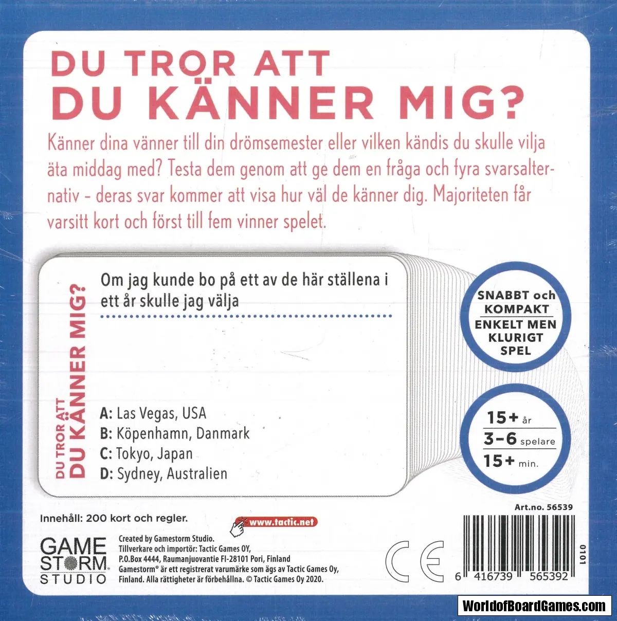 Känner dina vänner till din drömsemester eller vilken kändis du skulle vilja äta middag med? Testa dem genom att ge dem en fråga och fyra svarsalternativ - deras svar kommer att visa hur väl de känner dig. Majoriteten får varsitt kort och först till fem vinner spelet.