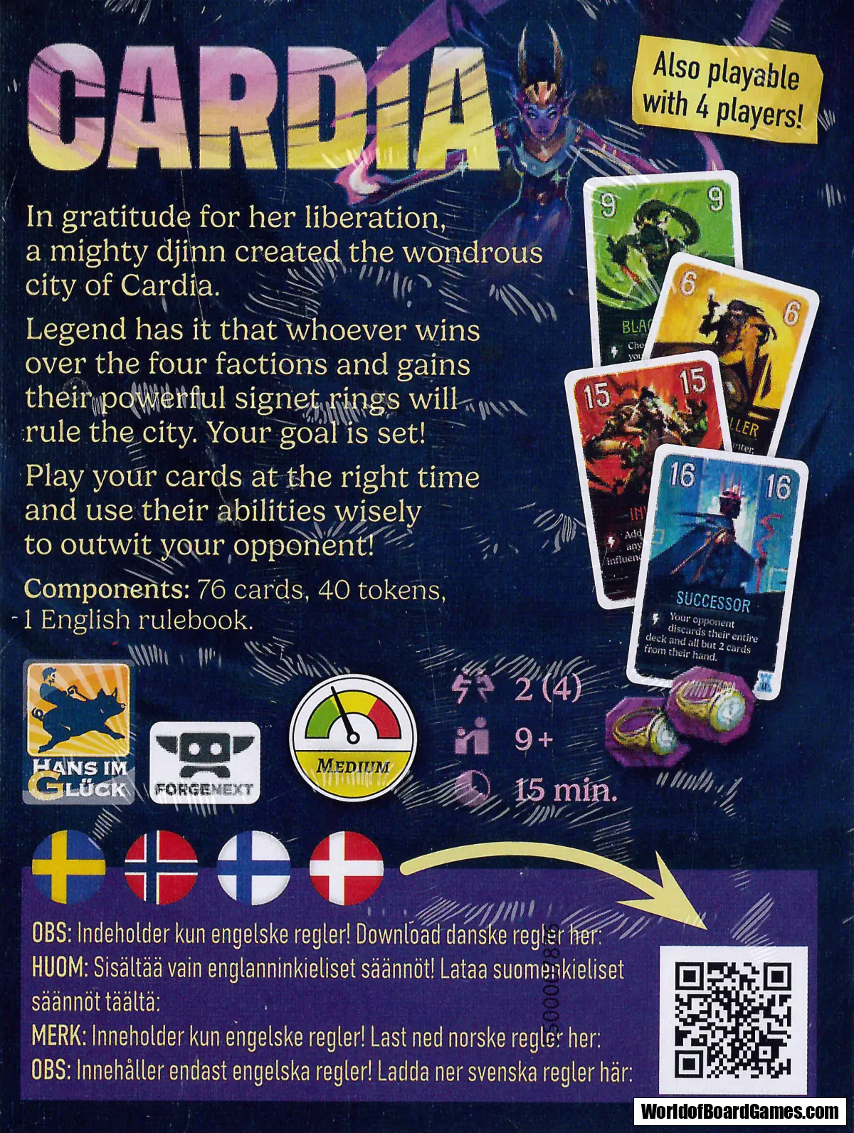 Cardia is a fast paced, strategic card game for two players who battle for control of Cardia.