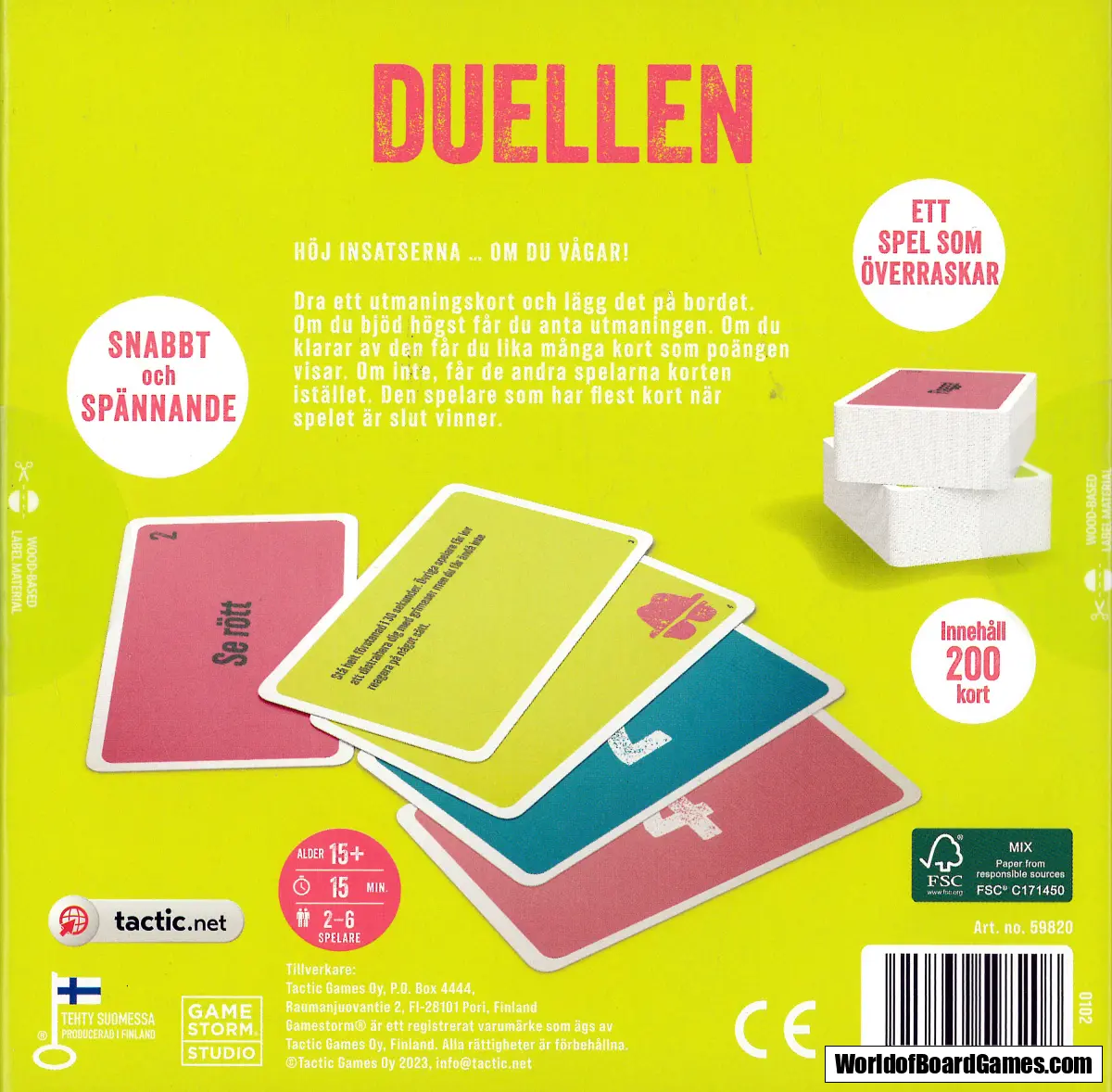 Dra ett utmaningskort och lägg det på bordet. Om du bjöd högst får du anta utmaningen. Om du klarar av den får du lika många kort som poängen visar. Om inte, får de andra spelarna korten istället. Den spelare som har flest kort när spelet är slut vinner.