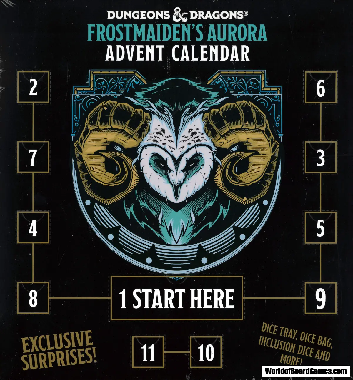 FanRoll has partnered with D&D for this Holiday season! Frostmaiden’s Aurora Advent Calendar includes all the accessories you need to play! Countdown the 12 days to Christmas with the official D&D advent dice calendar that includes a dice tray, a custom D&D inclusion dice set, a D&D mini set, an exclusive mega d20, a dice bag to carry your loot, and more!