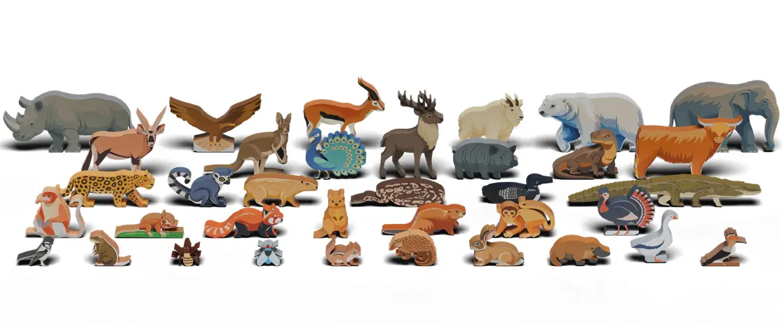 Each player will adapt their strategy to their chosen Animals, curating their tableau to optimize their Animal’s unique ability and movement requirements. At the end of each round, a shared Global Ability affects all players, with rewards shaped by each player’s progress and decisions.