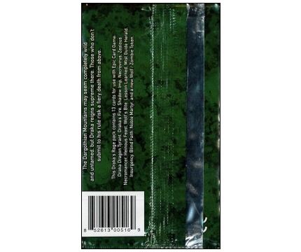 This Draka's Rage pack includes 12 non-random cards that include cards from each alignment. Draka's Rage pack color is green, because the Tyrant card included is Draka which is a wild (green) card. The pack includes evil, good, sage and wild cards.