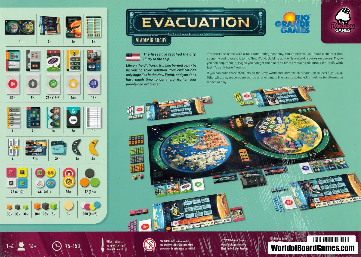 In Evacuation, players lead their nations on a mission to establish civilizations on the New World. Players compete for the best landing sites in a race to see who can build their new home first.