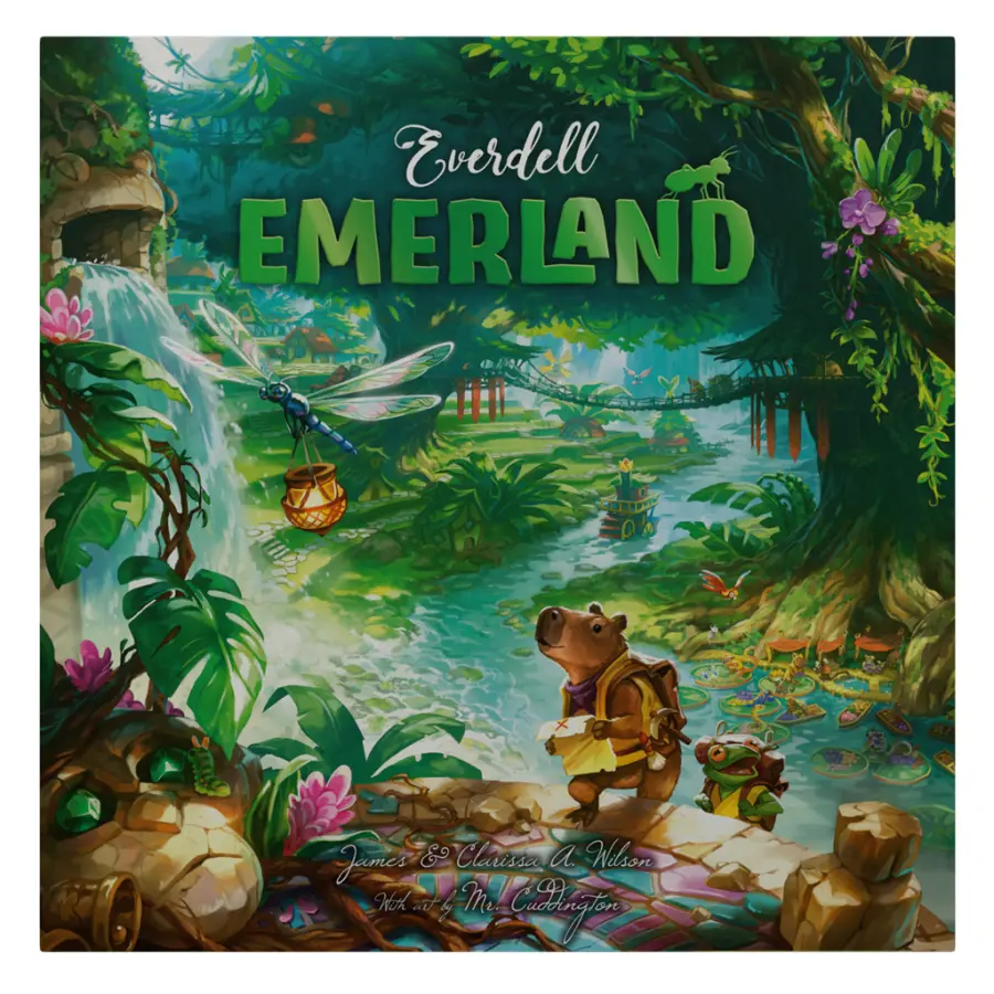 Deep in the tropical jungle to the west of the Everdell Valley lies the country of Emerland, a vibrant land known for its artistic and musical culture, and for its abundance of natural resources, including valuable gems mined from its many underground caverns. Tiny critters found here—mostly insects—are fastidious and clever Helpers, often assisting the larger critters in their work and in optimizing or bringing beauty to their cities and homes.