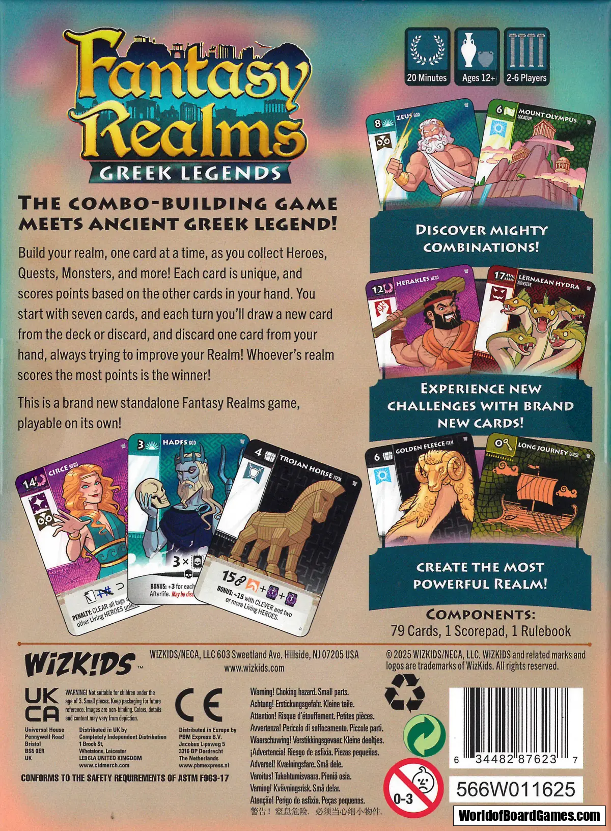 Fantasy Realms: Greek Legends takes this now classic formula, and adds some new mechanical twists to match its theme. It features attribute tags, iconographic scoring condition reminders, and all-new graphic design and illustrations!