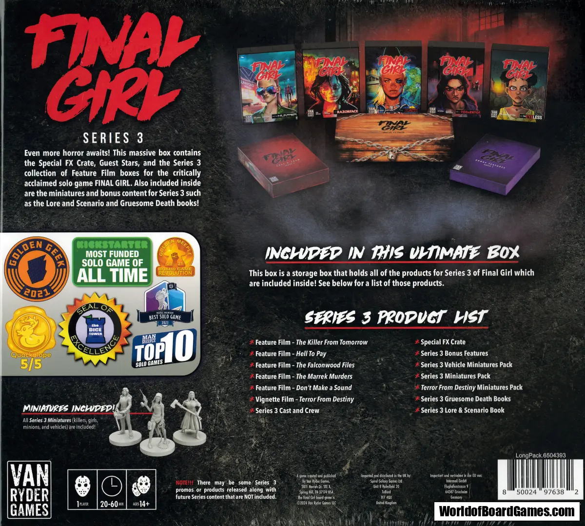 - Final Girl: Special FX Crate (includes Accessories Box, Guest Stars Promos Box, and Guest Stars Miniatures Box)