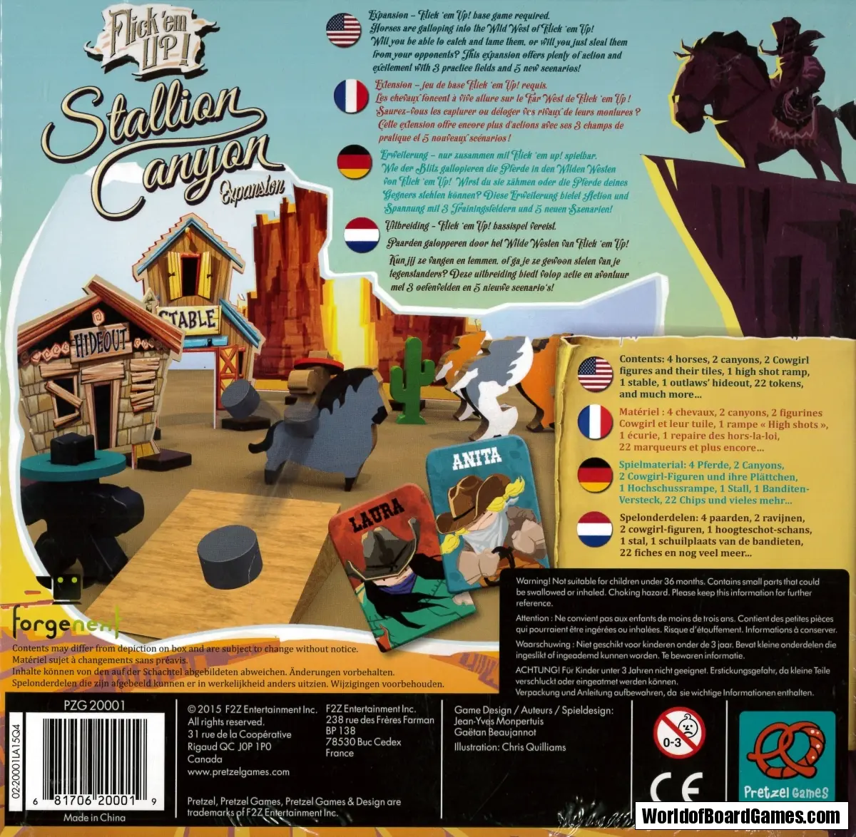 Embrace your inner cowboy and ride into the sunset with this exciting Flick’em Up! follow up! The Flick’em Up! Stallion Canyon expansion brings the rivalry between the law and the terrifying Cooper Clan further into the West.