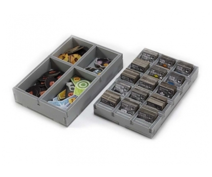 This insert is designed to be compatible with Rise of the Ancients® & Shadows of the Rift® expansions for Eclipse®. The design provides both efficient storage and improved game play. Many of the trays can be utilised during the game, and they greatly aid set-up and clear-away times. The boards and player boards act as a lid on top of the trays.