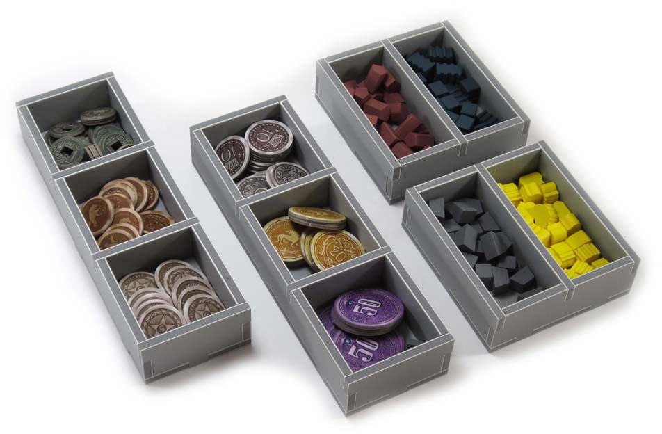 Insert compatible with Scythe®, and the Invaders from Afar® expansion.The design provides both efficient storage and improved game play. Many of the trays can be utilised during the game, and they greatly aid set-up and clear-away times. The rules act as a lid on top of the trays.
