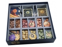 Insert compatible with Twilight Imperium 4th Edition®, and has space provided for future expansions. The design provides both efficient storage and improved game play. Many of the trays can be utilised during the game, and they greatly aid set-up and clear-away times. The rules and boards act as a lid on top of the trays.