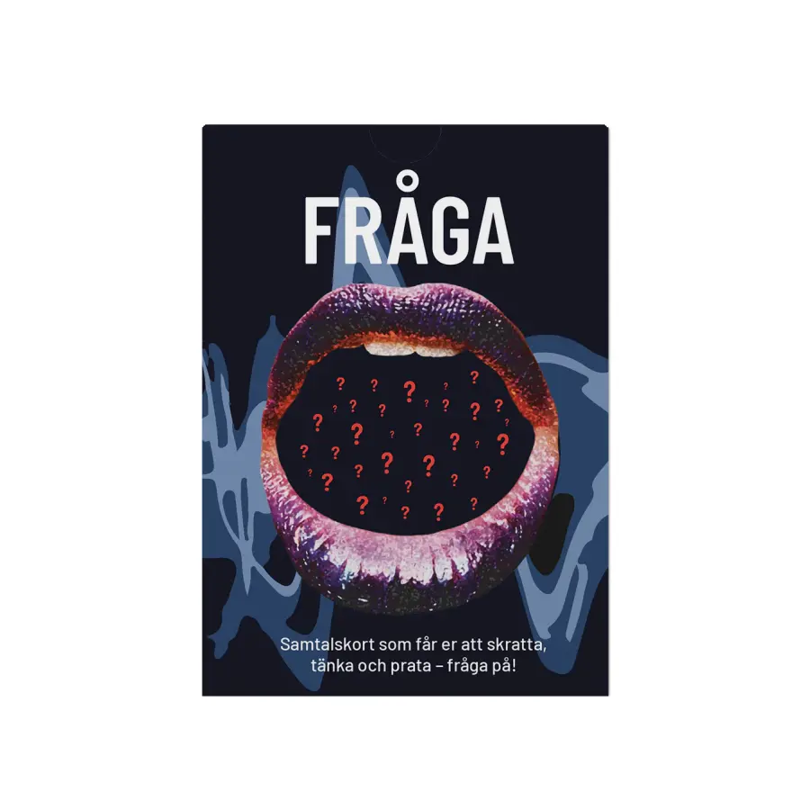 FRÅGA är en uppsättning samtalskort fyllda med roliga, trevliga och djupa frågor för meningsfulla vardagssamtal - fråga på!