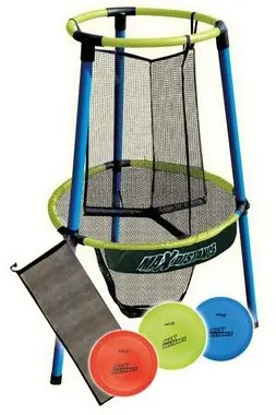 Frisbeegolf är ett roligt spel för såväl barn som vuxna. Sikta och försök kasta frisbeen i målkorgen. Perfekt för lek i trädgården, att öva puttar med, eller som delmoment i sommarfestens 5-Kamp. Frisbeegolf-setet innehåller en målkorg (monterbar) och tre frisbees i olika färger.