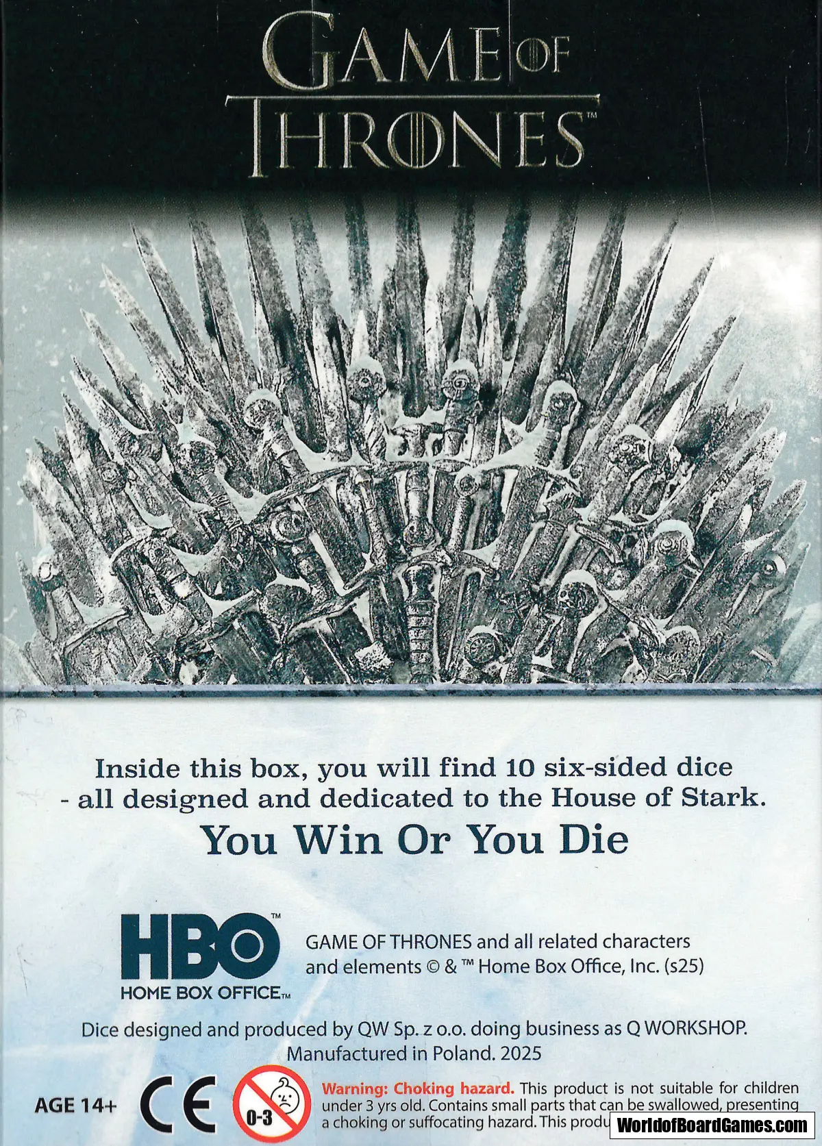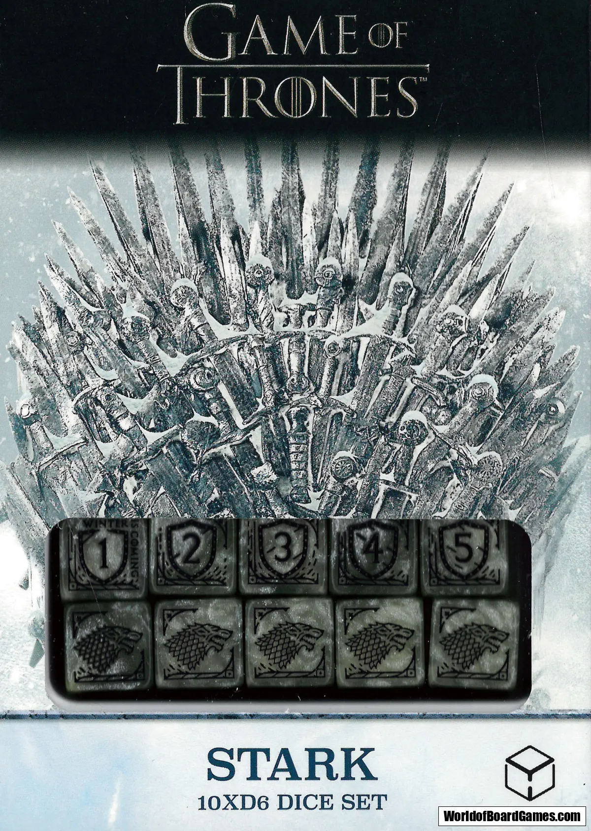 House Stark – The highest value faces of each dice feature the direwolf as the Stark sigil, while the lowest face is adorned with its motto, “Winter is Coming.”