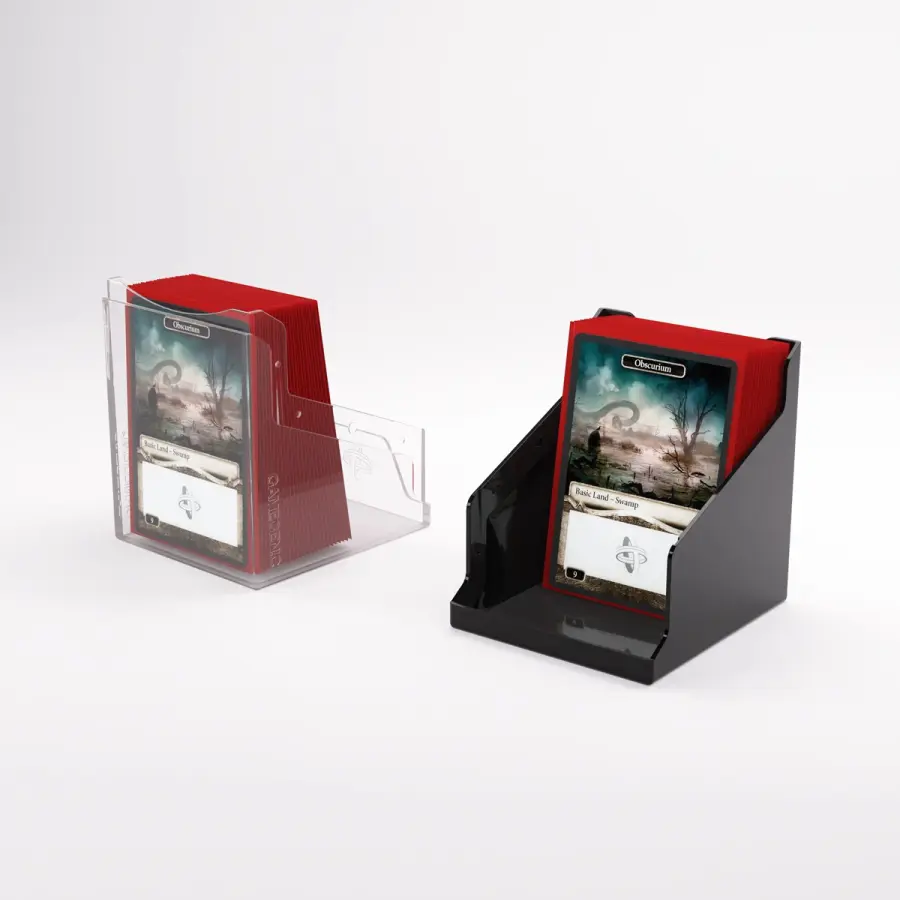 “If you’re gonna stand, stand like a Bastion!”– The Bastion 100+ XL is a very compact and rock-solid deck box to safely protect 100+ double-sleeved cards in Thick Inner Sleeves. Due to translucent materials and smart positioning of the closing flaps, the top or Commander card is fully visible from the outside without opening the box. The innovative secure click-lock mechanism protects your deck while still allowing easy access. The Bastion consists of 2 symmetrical parts that easily convert into a card pile and discard pile holder. It is perfect for a huge variety of trading card games. Thanks to its modular design, the Bastion fits perfectly into other Gamegenic products. It also comes with a write-on sticker for personalization. The Bastion is available in 10 different colors, including an exclusive mix & matched black/clear version.
