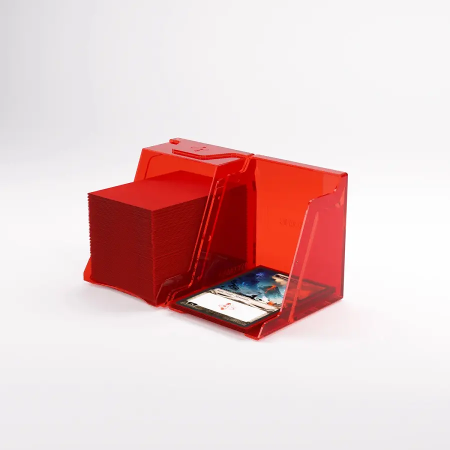 “If you’re gonna stand, stand like a Bastion!”– The Bastion 100+ XL is a very compact and rock-solid deck box to safely protect 100+ double-sleeved cards in Thick Inner Sleeves. Due to translucent materials and smart positioning of the closing flaps, the top or Commander card is fully visible from the outside without opening the box. The innovative secure click-lock mechanism protects your deck while still allowing easy access. The Bastion consists of 2 symmetrical parts that easily convert into a card pile and discard pile holder. It is perfect for a huge variety of trading card games. Thanks to its modular design, the Bastion fits perfectly into other Gamegenic products. It also comes with a write-on sticker for personalization. The Bastion is available in 10 different colors, including an exclusive mix & matched black/clear version.
