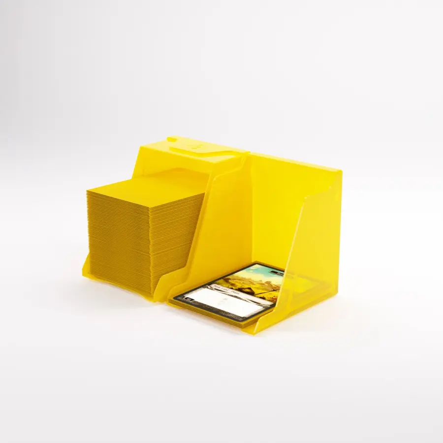 “If you’re gonna stand, stand like a Bastion!”– The Bastion 100+ XL is a very compact and rock-solid deck box to safely protect 100+ double-sleeved cards in Thick Inner Sleeves. Due to translucent materials and smart positioning of the closing flaps, the top or Commander card is fully visible from the outside without opening the box. The innovative secure click-lock mechanism protects your deck while still allowing easy access. The Bastion consists of 2 symmetrical parts that easily convert into a card pile and discard pile holder. It is perfect for a huge variety of trading card games. Thanks to its modular design, the Bastion fits perfectly into other Gamegenic products. It also comes with a write-on sticker for personalization. The Bastion is available in 10 different colors, including an exclusive mix & matched black/clear version.
