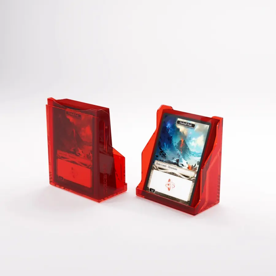 “If you’re gonna stand, stand like a Bastion!”– The Bastion 50+ is a very compact and rock-solid deck box to safely protect 50+ double-sleeved cards in Closable Inner Sleeves. It is ideal for decks with 55+ double-sleeved cards in standard inner sleeves. Due to translucent materials and smart positioning of the closing flaps, the top card is fully visible from the outside without opening the box. The innovative secure click-lock mechanism protects your deck while still allowing easy access. The Bastion consists of 2 symmetrical parts that easily convert into a card pile and discard pile holder. It is perfect for a huge variety of trading card games. Thanks to its modular design, the Bastion fits perfectly into other Gamegenic products. It also comes with a write-on sticker for personalization. The Bastion is available in 10 different colors, including an exclusive mix & matched black/clear version.