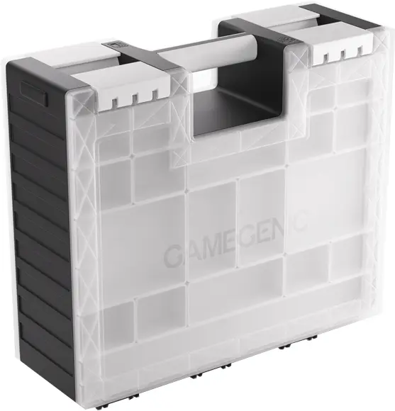 The Game Castle is a perfect storage solution for 6 Commander Decks** (6x 100 double-sleeved cards), tokens, dice, movement/range tools, and many other gaming accessories! One side of the box houses six removable card holders for 600 double-sleeved cards in Thick Inner Sleeves or 800 board-game-sleeved cards. The other side holds 19 removable trays in 5 different sizes, including an extra-long tray to store movement/range tools, two trays in Mini-American card size, and two in Standard Card Game size. The trays can be swapped with those from the Gamegenic Token Silo and the Token Silo Cards Add-on, offering many different size and color combinations. The innovative clip mechanism ensures precise and secure closure.
