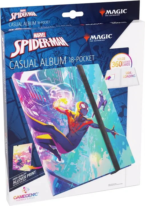 The Casual 18-Pocket Album has a colorful cover featuring high-quality, iconic full-art prints from the game. It holds 20 pages with 18 side-loading pockets each, for a total capacity of 360 cards (even double-sleeved). Black pages and strap complete the overall classy look. The extra-wide elastic strap with reinforced stitching safely closes the album.